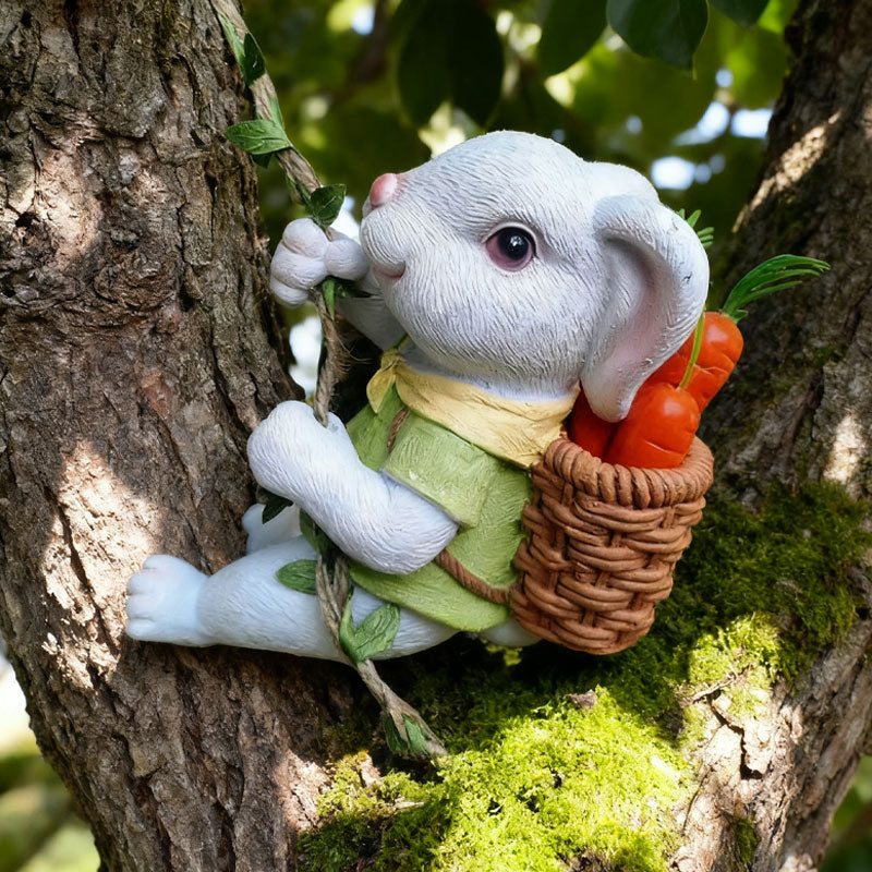 - BedĂ„rande Design: Tre lekfulla kaniner klĂ€ttrar lĂ€ngs ett grönt lövrepet och skapar en sagolik kĂ€nsla i trĂ€dgĂ„rden eller pĂ„ altanen. âš